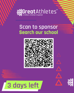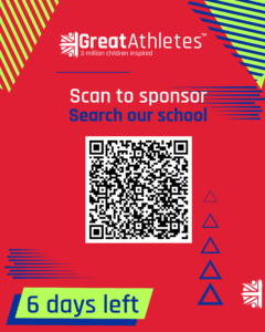 Remember that the money raised will go towards new sports equipment to improve levels of physical activity in our school! If you’ve not sponsored your child yet, now is a great time to reward them for their hard work. You can sponsor them online here: https://sportal.greatathletes.org/events/landing, or bring the cash in with your sponsorship form.